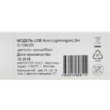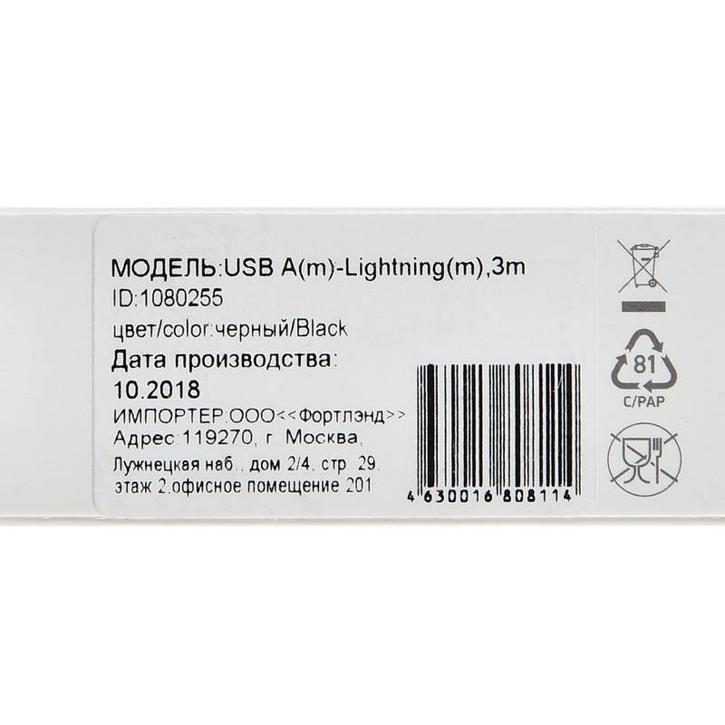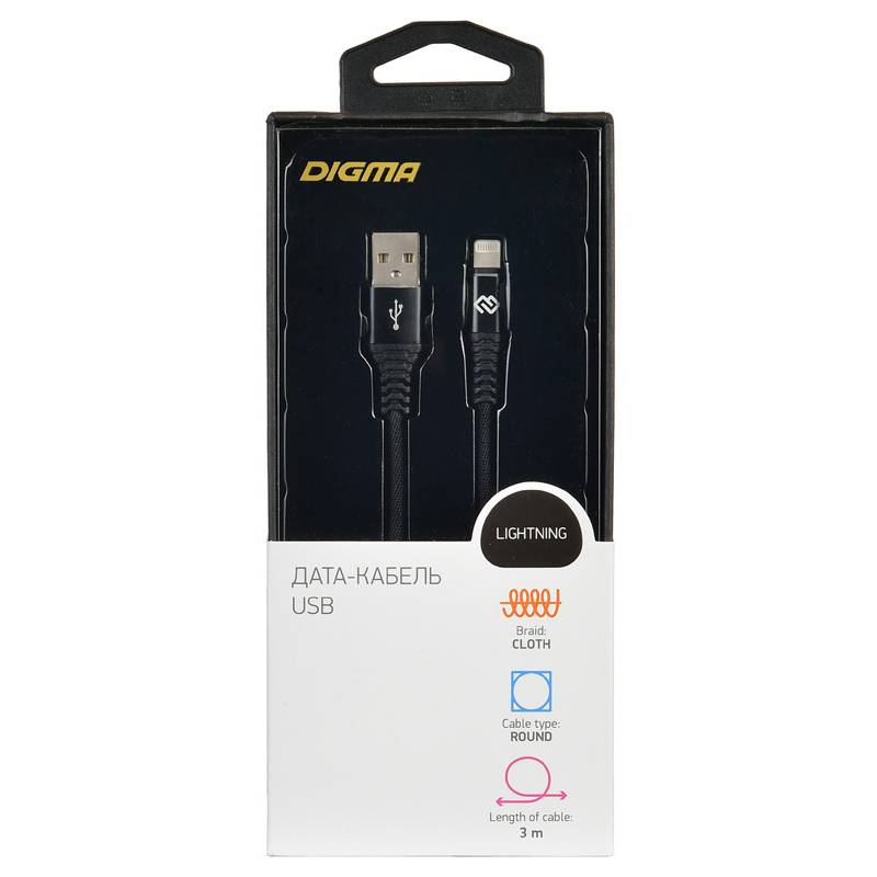 Кабель Digma LIGHT-3M-BRAIDED-BLK USB (m)-Lightning (m) 3м черный