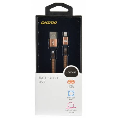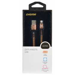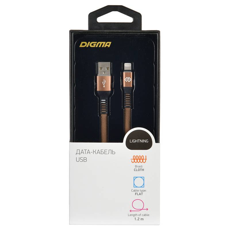 Кабель Digma LIGHT-1.2M-FLAT-BR USB (m)-Lightning (m) 1.2м коричневый плоский