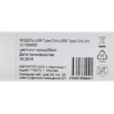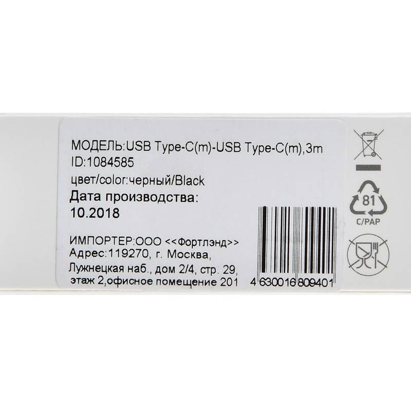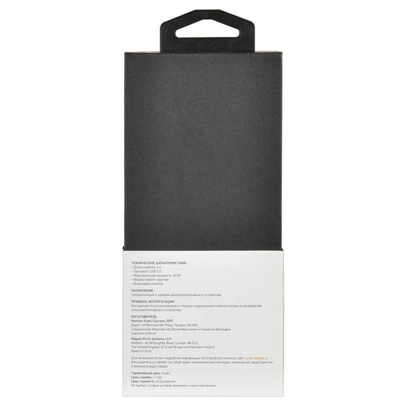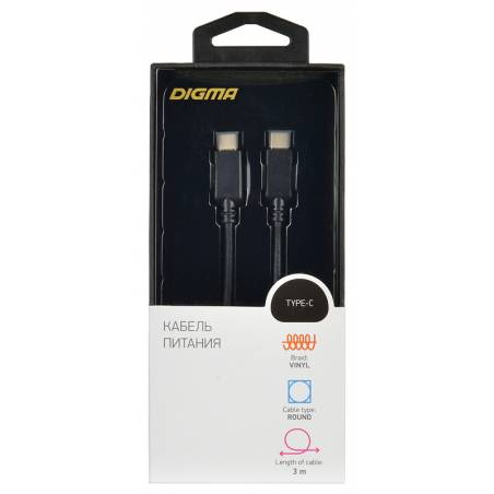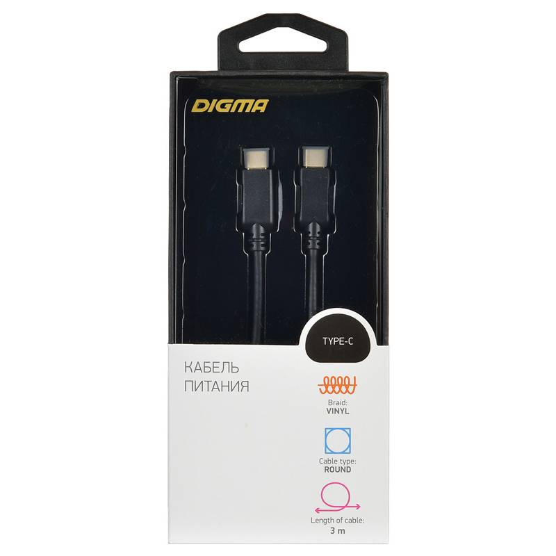 Кабель Digma Power Delivery 60W PD-60W-3M USB Type-C (m)-USB Type-C (m) 3м черный