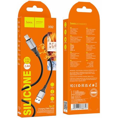 Кабель Hoco X92 Honest IP USB (m)-Lightning (m) 3м черный коробка