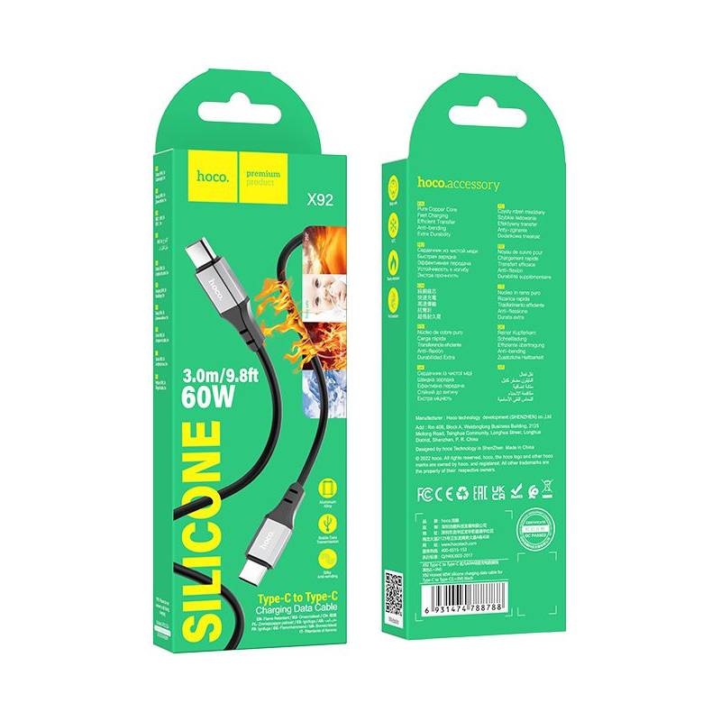 Кабель Hoco X92 Honest X92 HONEST TYPE-C TO TYPE-C USB Type-C (m)-USB Type-C (m) 3м черный коробка