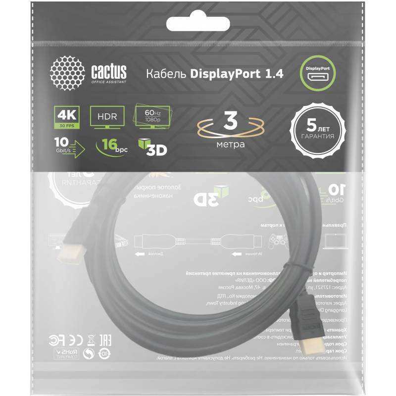 Кабель аудио-видео Cactus CS-DP-DP-1.4-3 DisplayPort (m)/DisplayPort (m) 3м. позолоч.конт. черный