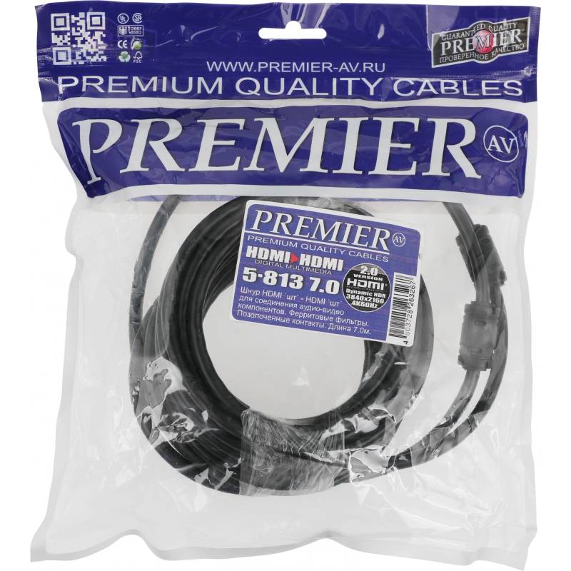 Кабель соединительный аудио-видео Premier 5-813 HDMI (m)/HDMI (m) 7м. феррит.кольца черный (5-813 7.0)