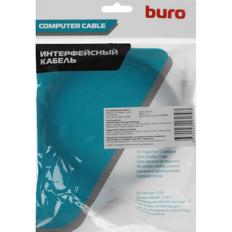 Кабель аудио-видео Buro HDMI (m)/HDMI (m) 2м. черный (BU-HDMI-V1.4-2M)