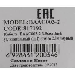 Кабель-удлинитель аудио Buro Jack 3.5 (m)/Jack 3.5 (f) 2м. черный (BAAC003-2)
