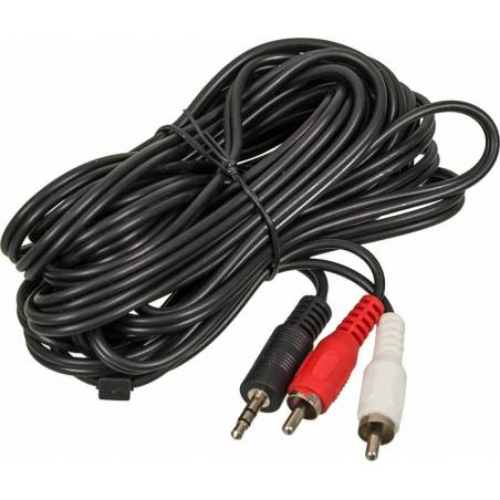 - Аудио кабель с большим диапазоном применения. Может использоваться для подключения устройств с аудиовыходом Jack 3.5 к акустическим системам, колонкам и прочим источникам звука, которые используют для входного сигнала разъемы RCA.