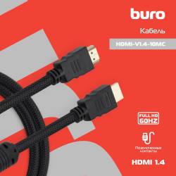 Кабель аудио-видео Buro HDMI (m)/HDMI (m) 10м. феррит.кольца позолоч.конт. черный (HDMI-V1.4-10MC)