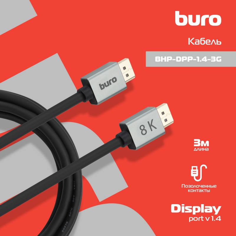 Кабель аудио-видео Buro V1.4 DisplayPort (m)/DisplayPort (m) 3м. позолоч.конт. черный (BHP-DPP-1.4-3G)