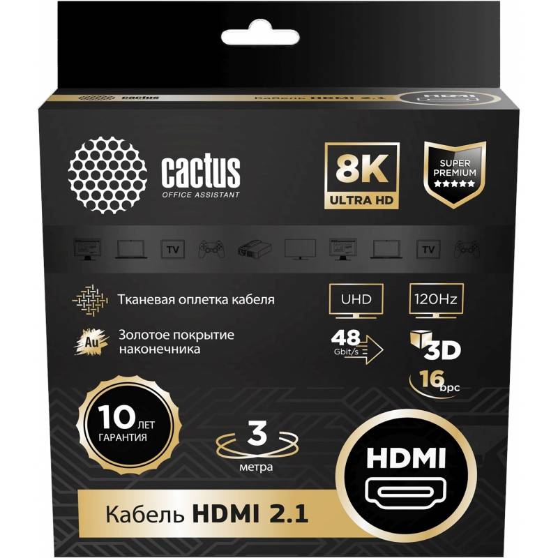 Кабель аудио-видео Cactus CS-HDMI.2.1-3 HDMI (m)/HDMI (m) 3м. позолоч.конт. серебристый
