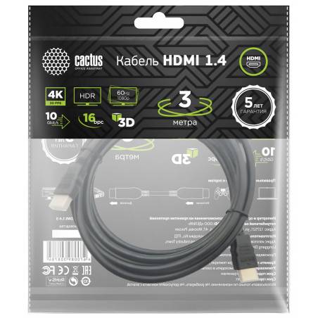 Кабель аудио-видео Cactus CS-HDMI.1.4-3 HDMI (m)/HDMI (m) 3м. позолоч.конт. черный
