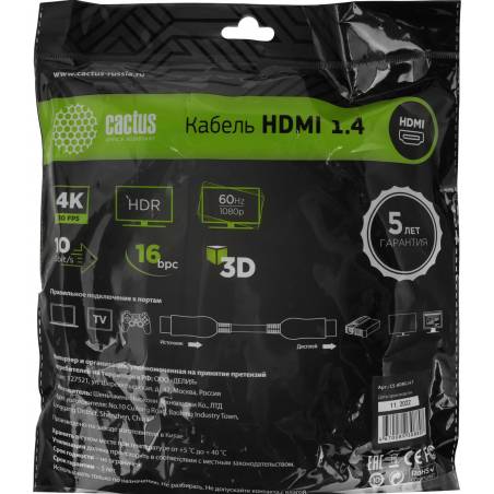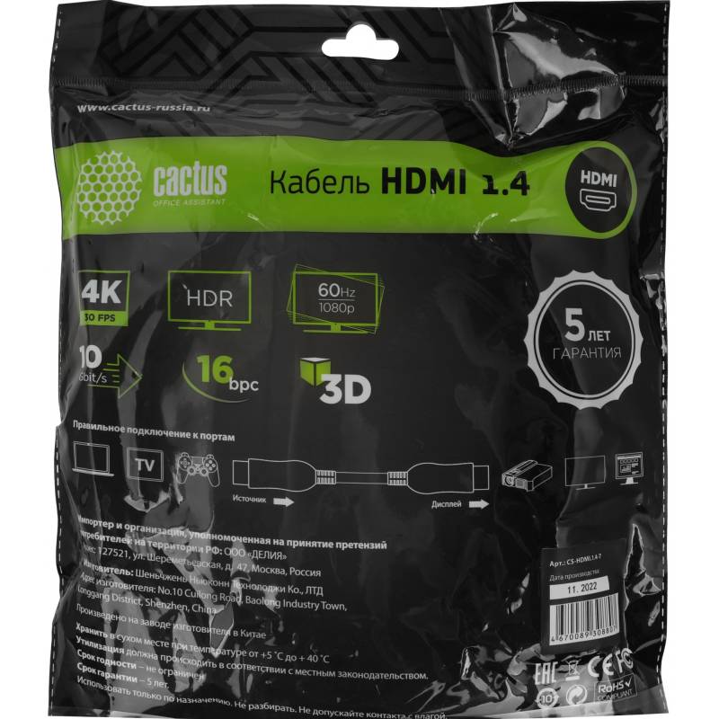 Кабель аудио-видео Cactus CS-HDMI.1.4-7 HDMI (m)/HDMI (m) 7м. позолоч.конт. черный