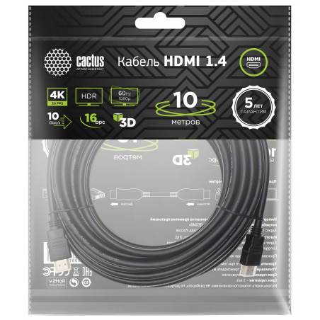 Кабель аудио-видео Cactus CS-HDMI.1.4-10 HDMI (m)/HDMI (m) 10м. позолоч.конт. черный