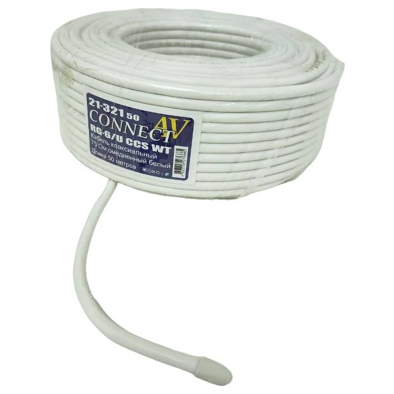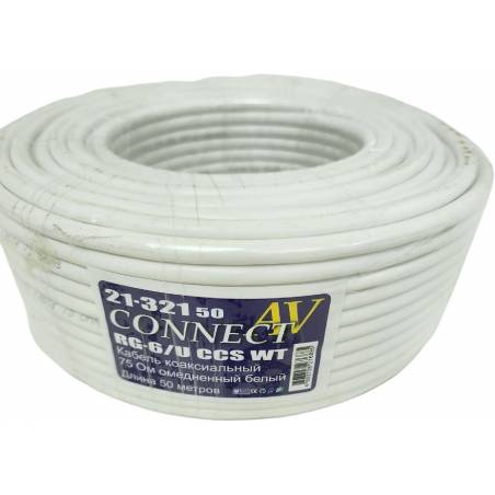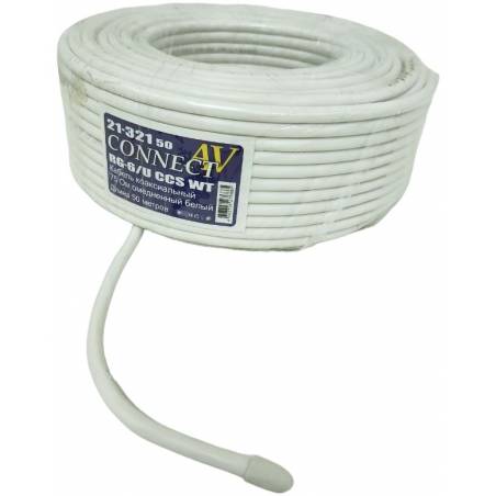 - Кабель CONNECT-AV RG-6/U CCS WT коаксиальный 75 Ом омедненный белый 100 м, бухта
