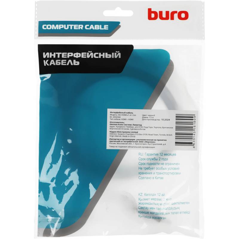 Кабель аудио-видео Buro HDMI (m)/HDMI (m) 1.5м. черный (BU-HDMI-V1.4-1.5M)