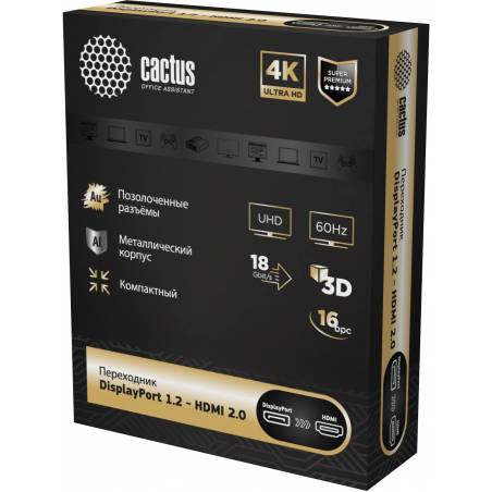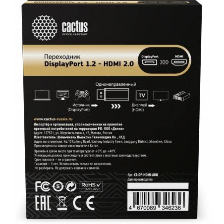 Переходник аудио-видео Cactus CS-DP-HDMI-ADR DisplayPort (m)/HDMI (f) позолоч.конт. черный