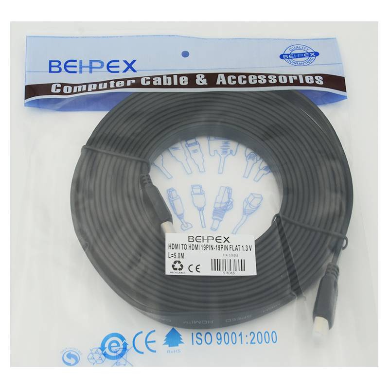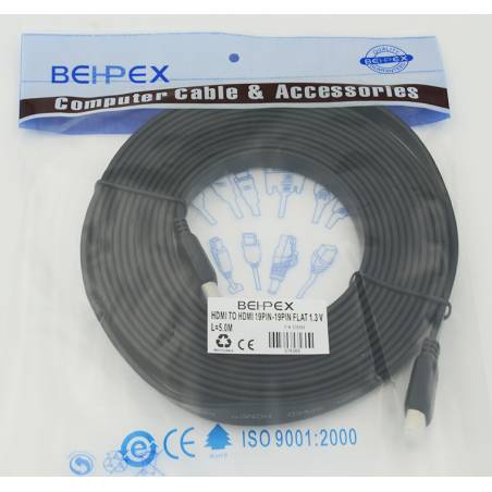 - HDMI кабель для подключений компьютеров, ноутбуков Blu-Ray плееров и прочего оборудования к мониторам, телевизорам и проектора. Плоское сечение позволяет прокладывать кабель через узкие щели и трудно доступные места. Длина кабеля 5 метра, позволит размест
