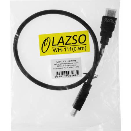 Кабель аудио-видео LAZSO WH-111 HDMI (m)/HDMI (m) 0.5м. позолоч.конт. черный (WH-111(0,5M))