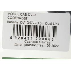 Кабель Ningbo DVI-D (m)/DVI-D (m) 3м. феррит.кольца черный