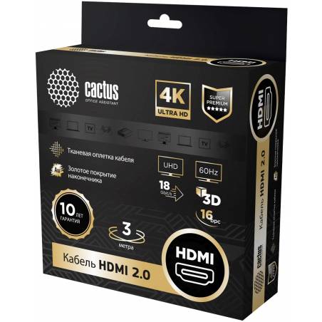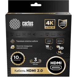 Кабель аудио-видео Cactus CS-HDMI.2-3 HDMI (m)/HDMI (m) 3м. позолоч.конт. черный