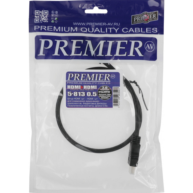 Кабель соединительный аудио-видео Premier 5-813 HDMI (m)/HDMI (m) 0.5м. феррит.кольца черный (5-813 0.5)