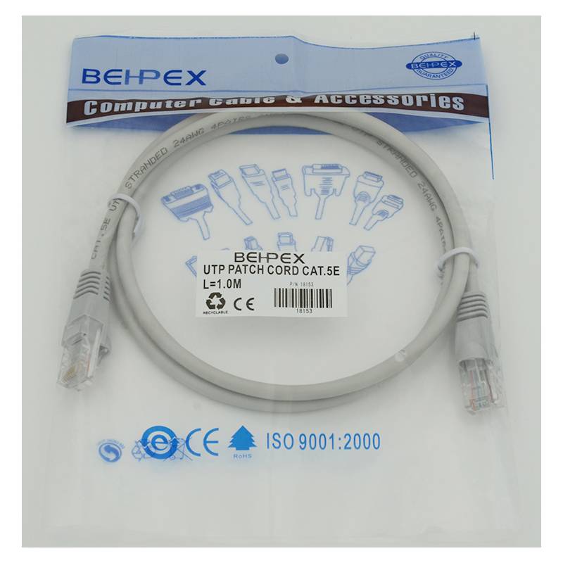 - Патч-корд UTP cat5E molded 1м RJ-45 (m)-RJ-45 (m)