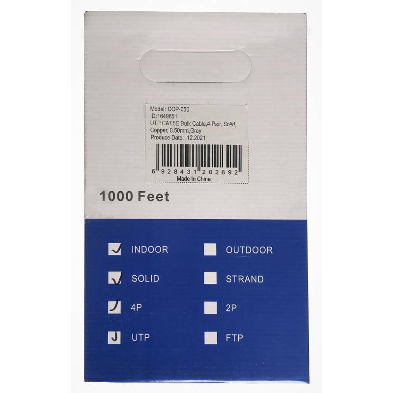 Кабель сетевой Ningbo UTP 4 пары cat.5E solid 0.5мм Cu molded 305м серый