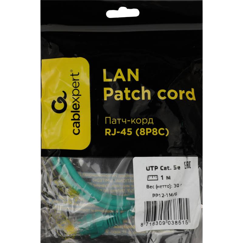 Патч-корд Premier PP12-1M/G 1000Гбит/с UTP 4 пары cat.5E CCA molded 1м зеленый RJ-45 (m)-RJ-45 (m)