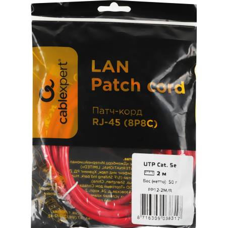 Патч-корд Premier PP12-2M/R 1000Гбит/с UTP 4 пары cat.5E CCA molded 2м красный RJ-45 (m)-RJ-45 (m)
