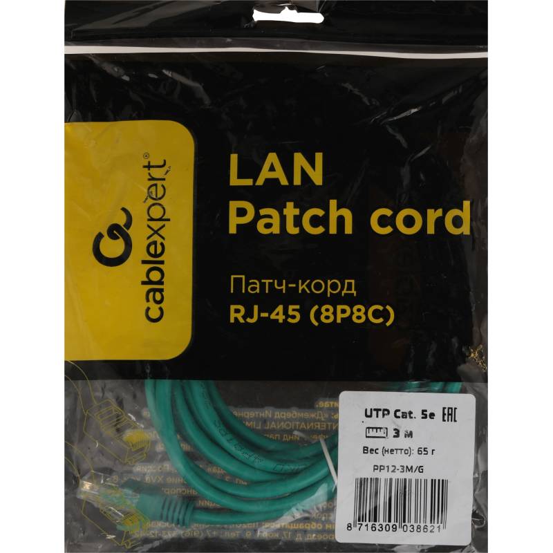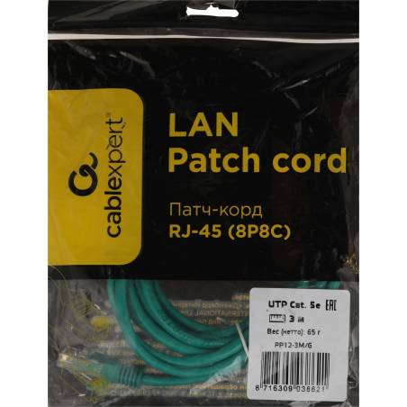 Патч-корд Premier PP12-3M/G 1000Гбит/с UTP 4 пары cat.5E CCA molded 3м зеленый RJ-45 (m)-RJ-45 (m)