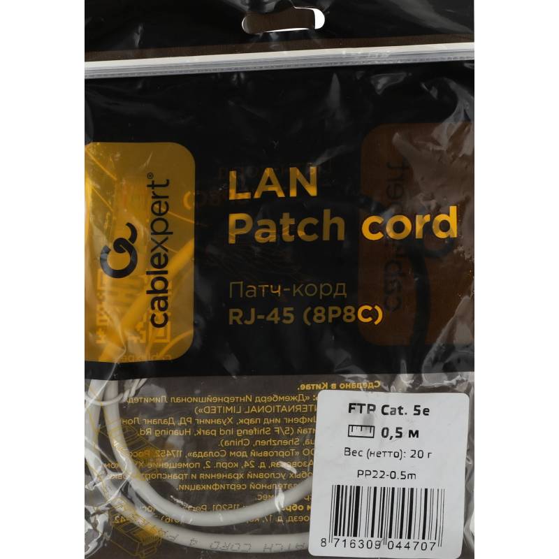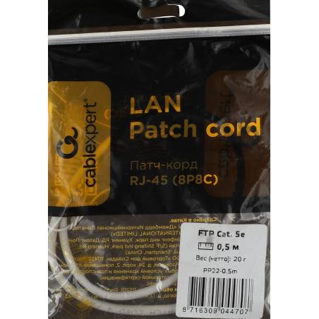 Патч-корд Premier PP22-0.5M 1000Гбит/с FTP 4 пары cat.5E CCA molded 0.5м серый RJ-45 (m)-RJ-45 (m)