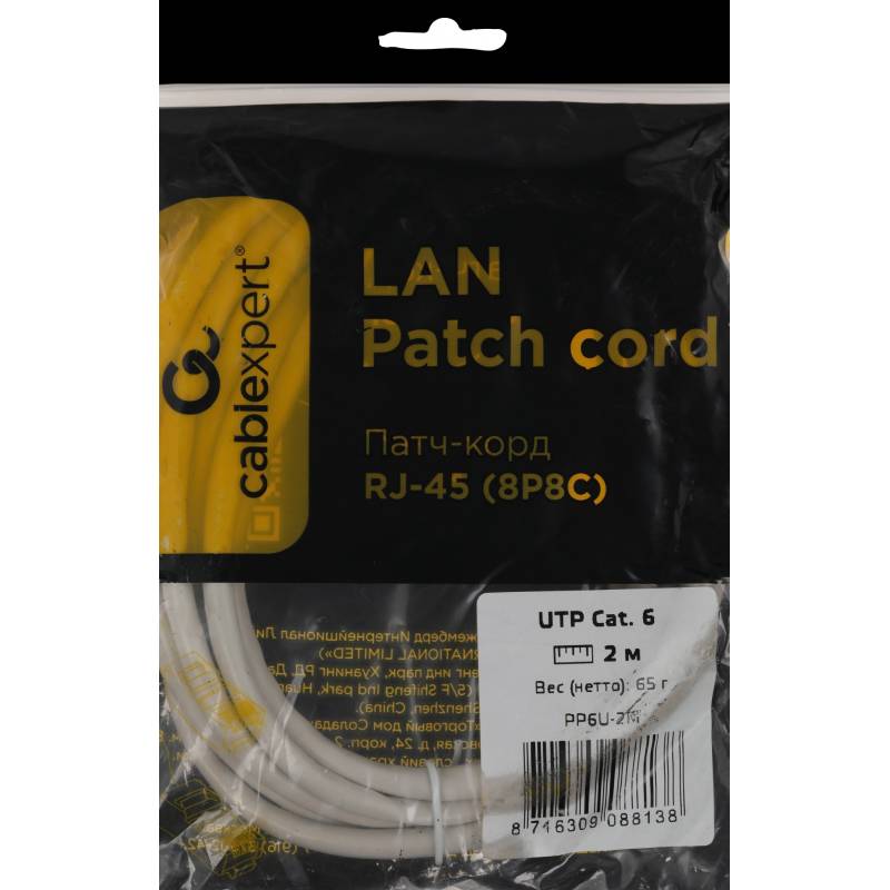 Патч-корд Premier PP6U-2M 10000Гбит/с UTP 4 пары cat.6 CCA molded 2м серый RJ-45 (m)-RJ-45 (m)