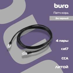 Патч-корд Buro BU-7-2M STP 4 пары cat.7 CCA molded 2м черный RJ-45 (m)-RJ-45 (m)