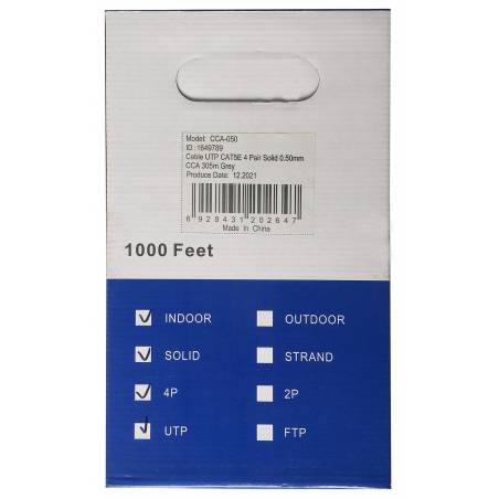Кабель сетевой Ningbo UTP 4 пары cat.5E solid 0.5мм CCA molded 305м серый