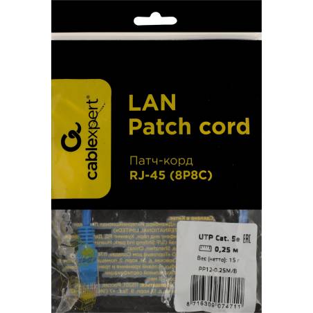 Патч-корд Premier PP12-0.25M/B 1000Гбит/с UTP 4 пары cat.5E CCA molded 0.25м синий RJ-45 (m)-RJ-45 (m)