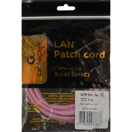 Патч-корд Premier PP12-2M/RO 1000Гбит/с UTP 4 пары cat.5E CCA molded 2м розовый RJ-45 (m)-RJ-45 (m)
