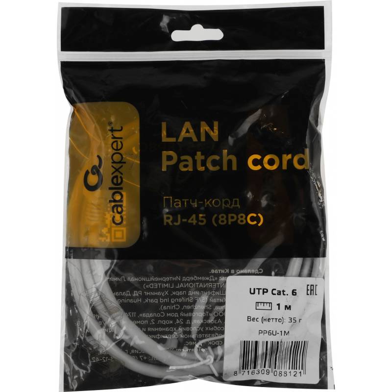 Патч-корд Premier PP6U-1M 10000Гбит/с UTP 4 пары cat.6 CCA molded 1м серый RJ-45 (m)-RJ-45 (m)