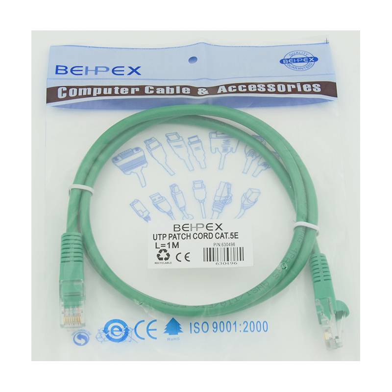 Патч-корд cat.5E molded 1м зеленый RJ-45 (m)-RJ-45 (m) (упак.:1шт)