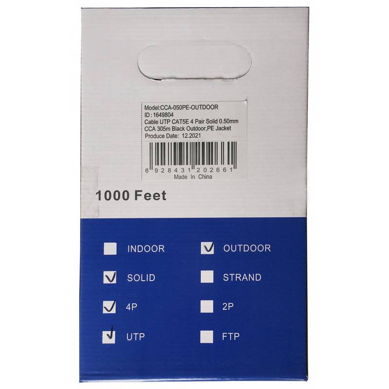 Кабель сетевой Ningbo UTP 4 пары cat.5E solid 0.5мм CCA molded 305м черный outdoor