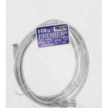 Патч-корд Premier 5-970 1Гбит/с UTP 4 пары cat.5E CCA molded 1.5м серый RJ-45 (m)-RJ-45 (m)