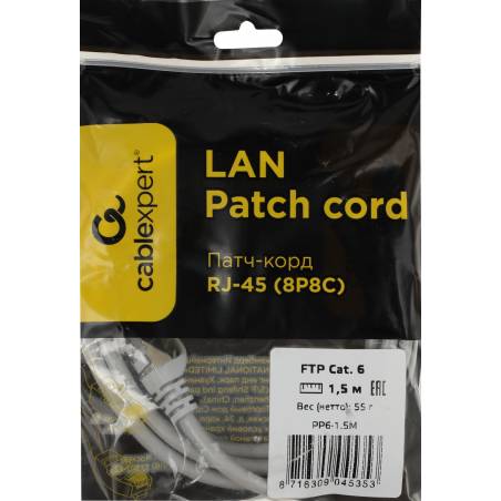 Патч-корд Premier PP6-1.5M 10000Гбит/с FTP 4 пары cat.6 CCA molded 1.5м серый RJ-45 (m)-RJ-45 (m)