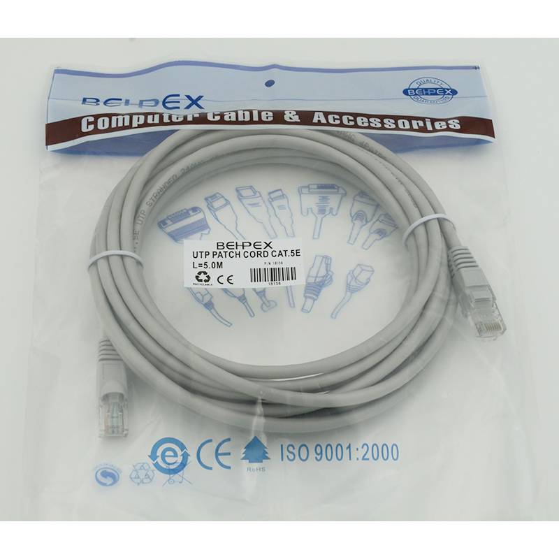 Патч-корд cat.5E stranded molded 5м серый RJ-45 (m)-RJ-45 (m)