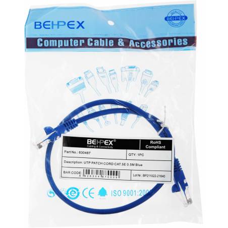 Патч-корд cat.5E stranded molded 0.5м синий RJ-45 (m)-RJ-45 (m)