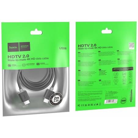 - Кабель Hoco US08 HDMI - HDMI для передачи видео и аудио сигнала, высокая скорость передачи данных до 4К при 60 кадрах в секунду