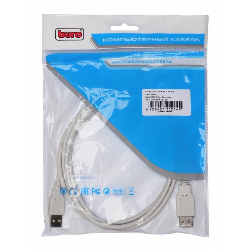 Кабель-удлинитель Buro Reversible USB A(m) USB A(f) 1.8м серый