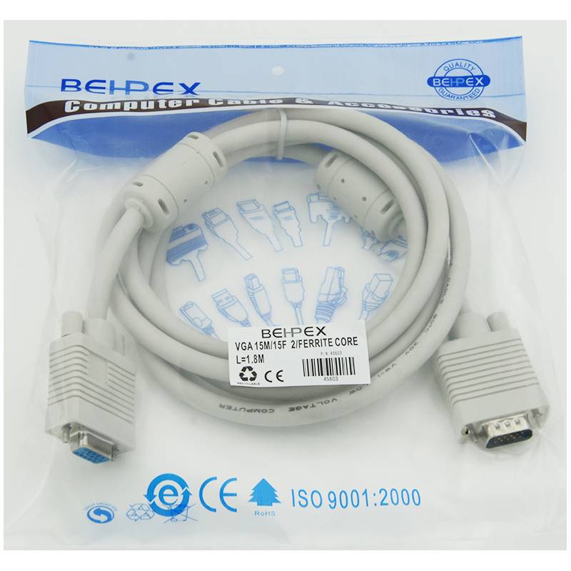 Кабель VGA (m) VGA (f) 1.8м феррит.кольца серый