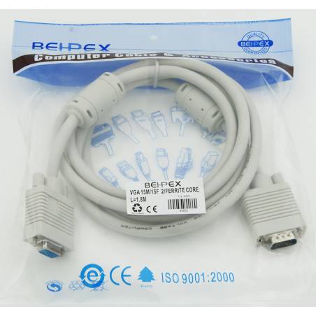 - Удлинитель для кабелей VGA, передающих видеосигнал от системных блоков и ноутбуков к мониторам, телевизорам, проекторам и прочим устройствам вывода изображения. Длина кабеля 1.8 метра.