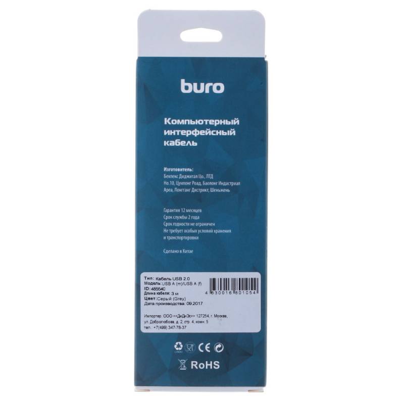 Кабель Buro USB A(m) USB A(f) 3м (BHP RET USB_AF30) серый (блистер)