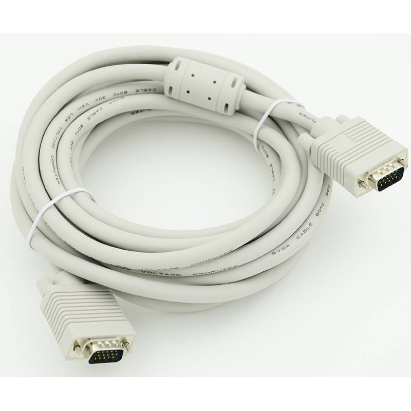 - Кабель VGA с ферритовыми кольцами, способный быстро и качественно передавать видеосигнал от компьютера или ноутбука к монитору, телевизору или проектору. Длина кабеля 5 метров.