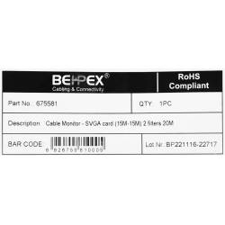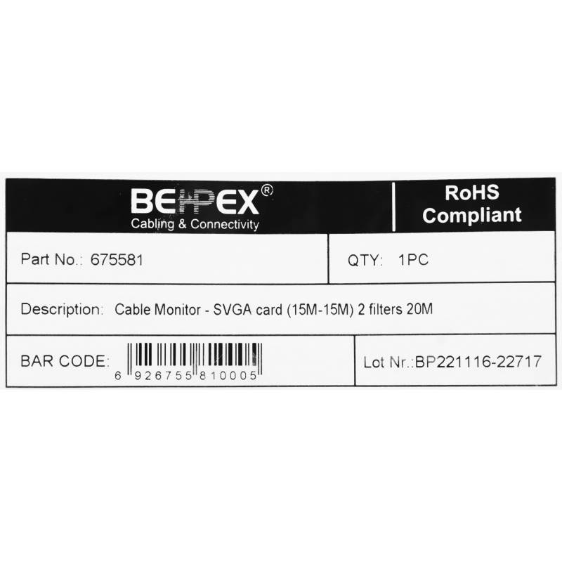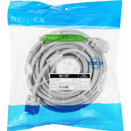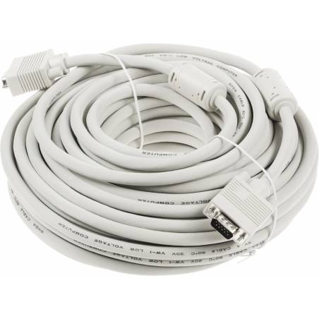 - VGA кабель длиной 20 метров, дающий огромные возможности по размещению оборудования в больших помещениях. Встроенные ферритовые кольца блокируют помехи искажающие идущий по проводу сигнал, таким образом повышая его качество.