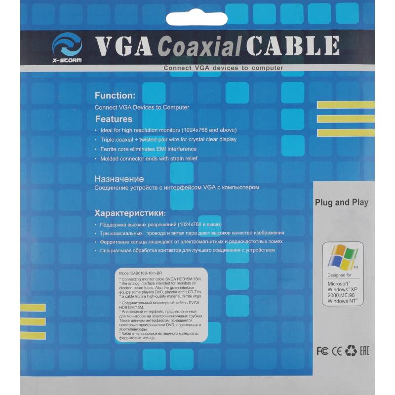 Кабель Ningbo CAB016S-10m VGA (m) VGA (m) 10м (CAB016S-10M-BR) феррит.кольца (блистер)